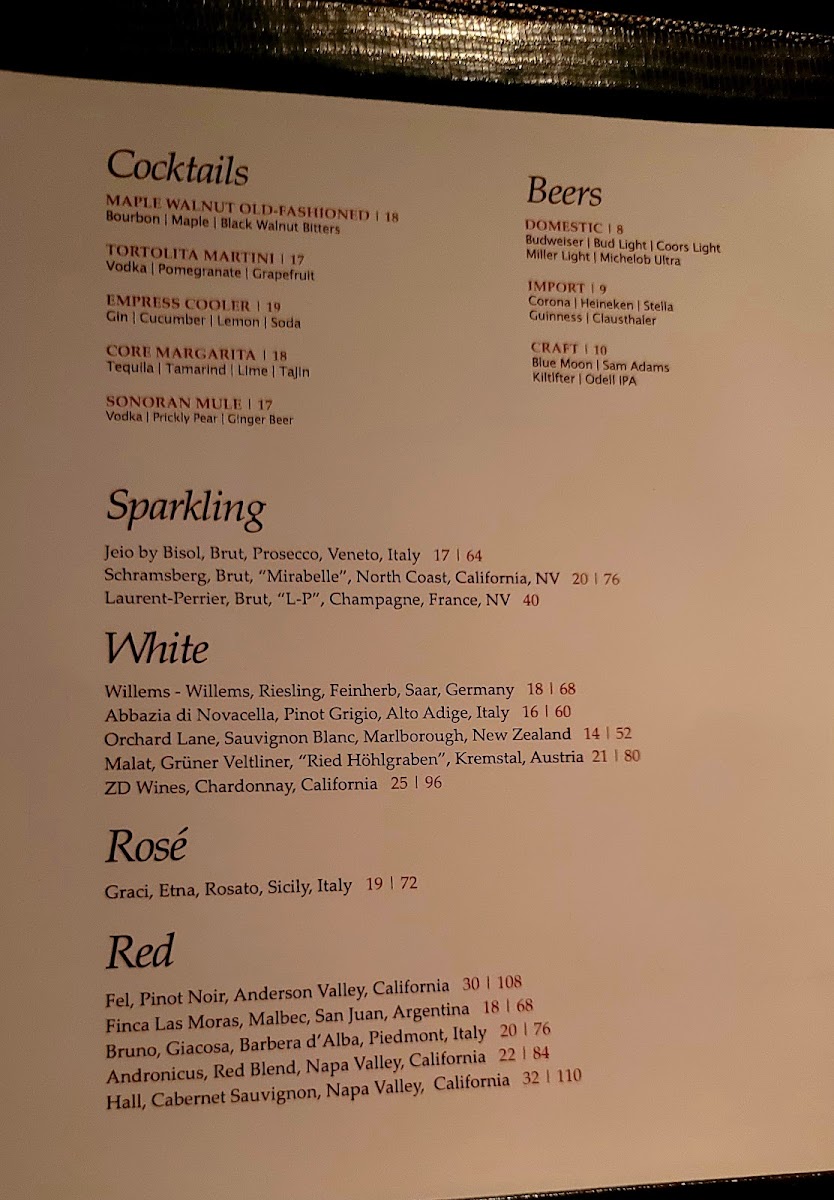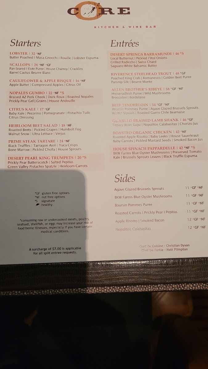 Located in picturesque Marana, AZ, CORE Kitchen & Wine Bar presents a refined menu that embodies culinary excellence. Each dish is thoughtfully crafted, promising a luxurious dining experience. Highlights include the tender Kurobuta Pork Tenderloin and the decadently creamy Seafood Risotto, each bursting with flavor and artfully presented.